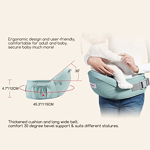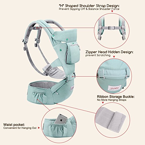 ?The Velcro on waist belt is super strong but won't stick to your clothes. ?"H" straps increase the design of cushion for leaning on, prevent back button with friction. ?Straps, the main body of grid, relaxed breathable. ?Single waist stool, waist stool, waist stool straps back 3 in 1, meet the different needs of users. ?Straps, main body and waist stool USES zippers and double double reinforcement, to ensure the safety of your baby. ?Shoulder belt with removable protecting mask, baby prevent strong light exposure and cold wind. ?Joint buckles between the carrier and hip seat hides the zipper head to avoid scratching baby.
