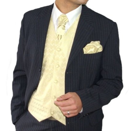 - Title : Paul Malone Wedding Vest Set Yellow 5pcs Tuxedo Vest + Necktie + Ascot + Hanky + 2 Cufflinks L
