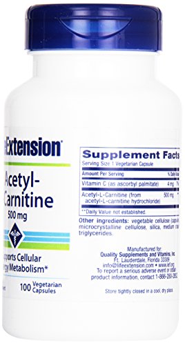 -. Title : Life Extension Acetyl L-carnitine 500mg Vegetarian Capsules, 100-count (Pack of 12)