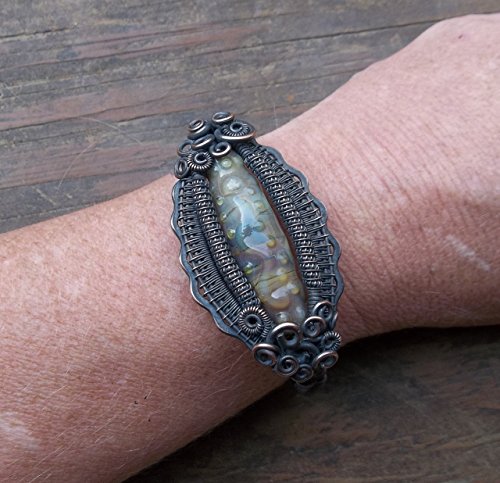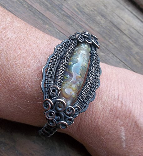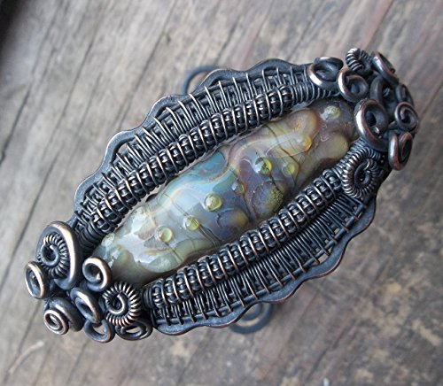 -. Title : 1 Copper Wire Wrapped Cuff with Handmade Lampwork Bead