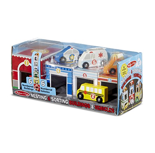 -. Title : Melissa & Doug Nesting and Sorting Blocks 6 Buildings 6 Wooden Vehicles