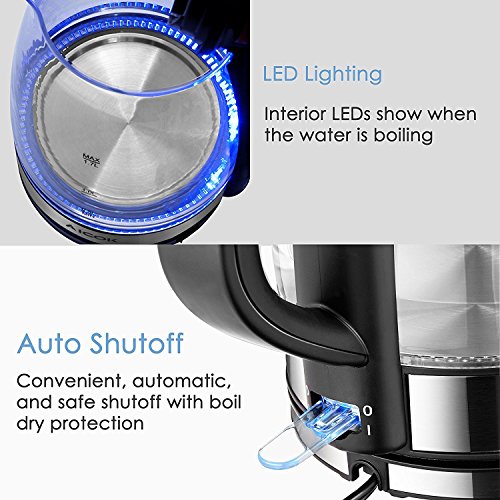 Extra fast water boiler - 1500watt power make the boiling more efficient than stovetop kettle and microwave. Even when fill to Large capacity(1.7L), the water comes to a full boil within 5-6 minutes and will be ready for tea, coffee, pasta, hot chocolate, oatmeal, instant soup etc.