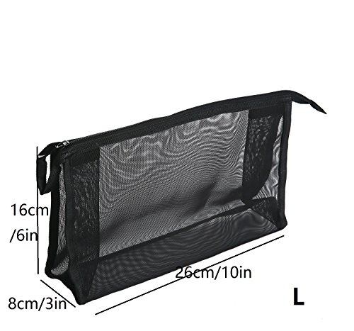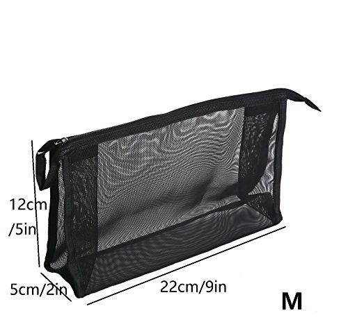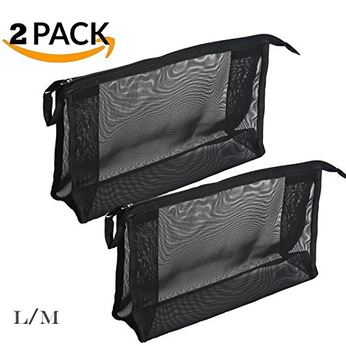 2 Piece Assorted Size Cosmetics See Through Make Up Bag/Organizer, Mesh Travel Accessories Organizer (Black)