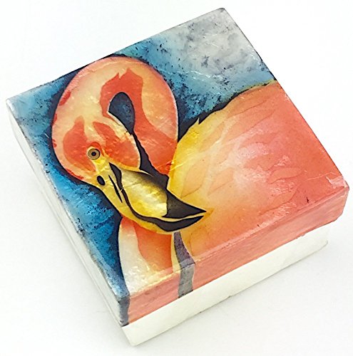 - A vibrant flamingo is painted on the Capiz Shell Trinket Box with a beautiful iridescent effect.