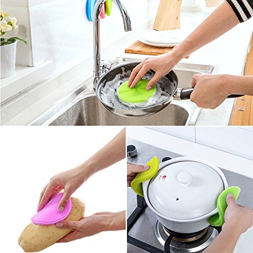 - MULTIPLE FUNCTION FOR YOUR HOME AND KITCHEN - Prefect for light washing, you can use this silicone scrubber brush for washing dishes, plates, pan, window, fruit, vegetable and so on, it also could work on heat insulating and opening the jars.