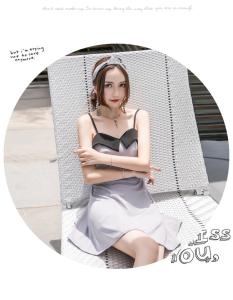 キャミワンピース ガーリー ミニ丈ワンピース フレアスカート ハイウエスト バイカラー プチプラ ナイトドレス セクシー
