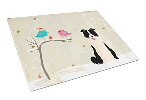 Caroline's Treasures BB2590LCB Christmas Presents Between Friends Border Collie Black White Glass Cutting Board, Large, Multicolor