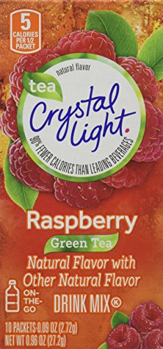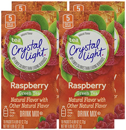 -. Binding : Misc. -. Brand : Crystal Light -. EAN : 0043000012871 -. Feature : Each Crystal Light On The Go box contains 10 individual packets that you mix with up to 16.9 fluid ounces (500 ml) of water / Each Crystal Light On The Go 8 ounce serving contains 5 calories / Crystal Light On The Go Raspberry Green Tea has 90% fewer calories than leading beverages / Crystal Light On The Go Raspberry Green Tea is a kosher product and gluten free / Crystal Light On The Go Raspberry Green Tea is 99% caffeine free (10 mg of caffeine per serving) and low in sodium -. IsAdultProduct : 0 -. Label : Crystal Light -. Manufacturer : Crystal Light -. NumberOfItems : 4 -. PackageQuantity : 4 -. ProductGroup : Grocery -. ProductTypeName : GROCERY -. Publisher : Crystal Light -. Studio : Crystal Light -. Title : Crystal Light On The Go Raspberry Green Tea, 10-Packet Box (Pack of 4) -. UPC : 043000012871