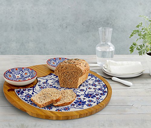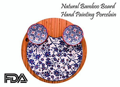 【UNIQUE BLUE CHINA DESIGN】Bright and beautiful and like no platter before. Made of hand-painted porcelain and quality bamboo, this cheeseboard adds an antique touch to any home. Colorful and exquisite, it is not only fit to use at the table but is also wired to hang as wall decor.
