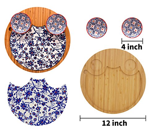 【2 SAUCE DIPPING BOWLS】Every set comes with 1 cheese plate and 2 dipping bowls. The board itself is 12 inch and the bowls are 4 inch.