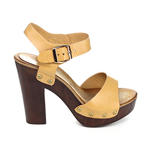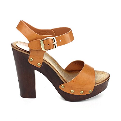 - Feature : Faux leather upper & Manmade sole / Slightly padded insoles / Adjustable ankle strap / Heel measures approximately 5"