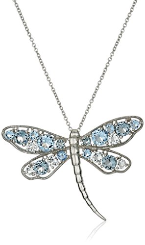 Sterling Silver Aquamarine Crystal, Sapphire Crystal and Light Azure Crystal Dragonfly Pendant Necklace, 18"