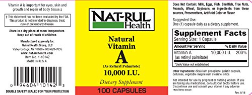 Vitamin A is important for eyes, skin and growth and repair of body tissue.‡ ‡ This statement has not been evaluated by the FDA. This product is not intended to diagnose, treat, cure or prevent any disease No Yeast • No Wheat • No Gluten • No Lactose No Milk • No Sugar • No Starch • No Preservatives No Artificial Colors, Flavors or Sweetener No Shellfish • Sodium Free