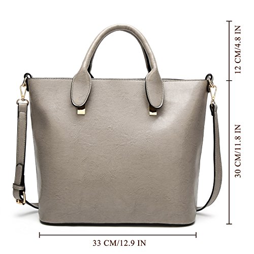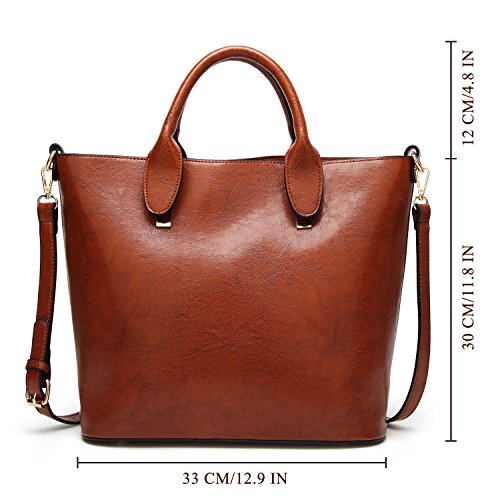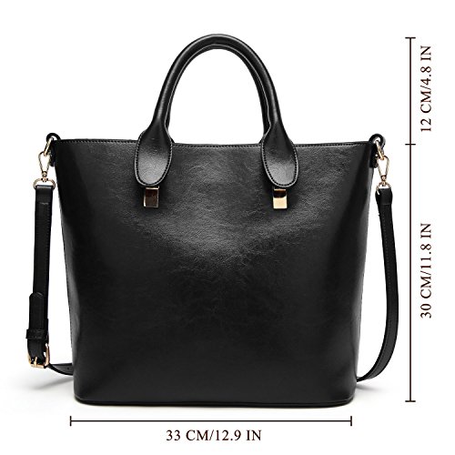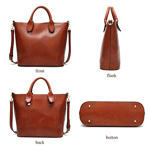 -. Feature : MATERIAL: High Quality Greased Leather / DIMENSIONS: 12.9"L x 5.1"W x 11.8"H, Handle height: 4.8" / INTERNAL:1 side zipper pockets for wallets ,1 middle zipper pockets, 2 compartments open pockets for keys/card. / FEATURES: Come with a long removable shoulder strap,Show elegant lady charm. Suitable for you to carry it in daily-use, such as shopping. dating, working, traveling and so on. / ToLFE has registered US Trademark,the item is ONLY provided by ToLFE, We promise to give you the best quality service,Thanks!
