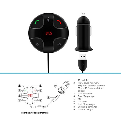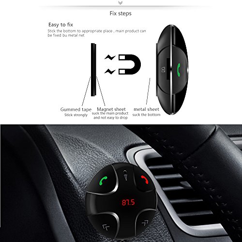 Bluetooth FM Transmitter, UMsky Car Kit Hands-Free Wireless Calling Magnetic Mount Music Player and Hand-free Calling Adapter Receiver with USB Charger