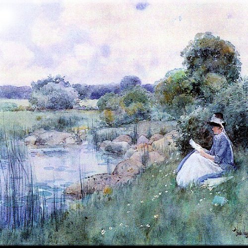 Rikki Knight RK-6intilec-3034 6" X 6" Childe Hassam Art Woman Reading Design Ceramic Art Tile
