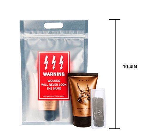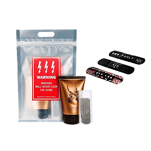 Even wounds need dressing up, no? Contains 9 plasters with 3 bespoke BADLAB designs in a sliding protective case. So you can stick it where it hurts. Ingredients Water, Glycerin, Stearic Acid, Lauric Acid, Propylene Glycol, Potassium Hydroxide, Myristic Acid, Potassium Cocoyl Glycinate, Acrylates Copolymer, Glyceryl Stearate, Fragrance, Lapis Lazuli, Propanediol, Croton Lechleri Latex Powder, Menthyl Lactate, Tetrasodium Etidronate, Phenoxyethanol, Methylisothiazolinone, Butylphenyl Methylpropional, Alpha-Isomethyl Ioneone, Limonene, Linalool. OTHER OPTIONS AVAILABLE Comes in different sizes and also BADLAB Personal Care Gift Set or Travel Kit. Feature