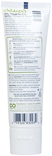 -. Binding : Health and Beauty -. Brand : Tom's of Maine -. Label : Tom's of Maine -. Manufacturer : Tom's of Maine -. Model : ATE-676B -. MPN : TS0301 -. PackageQuantity : 2 -. PartNumber : TS0301 -. ProductGroup : Health and Beauty -. ProductTypeName : HEALTH_PERSONAL_CARE -. Publisher : Tom's of Maine -. Studio : Tom's of Maine -. Title : Tom's of Maine Fluoride Free Children's Toothpaste, Silly Strawberry - 4.2 oz - 2 pk