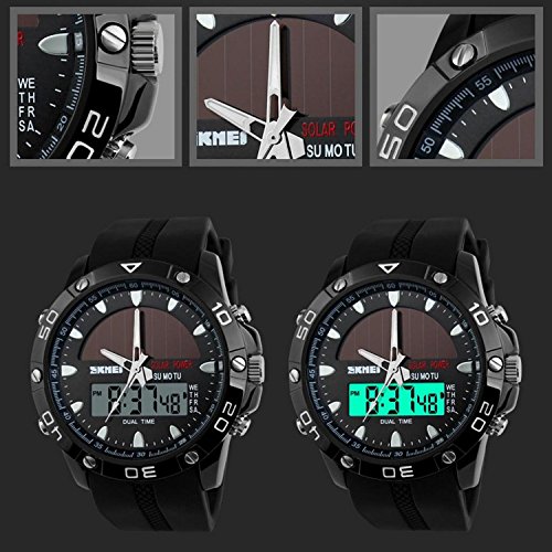 -. Title : Gosasa Men's Solar Power Military Dual Time Zones Slide Rule Silicone Band Sports Wrist Watch (Coffee)
