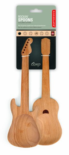 Studio : Kikkerland Publisher : Kikkerland Binding : Kitchen Product Description Rock out in the kitchen or at the dinner table with these guitar shaped wooden spoons. Great for tossing a salad, stirring soup or mixing batter. Made from durable beechwood, this set of 2 spoons come in the shapes of an electric guitar and acoustic guitar. Heat resistant and safe for use on non-stick cookware. Hand wash only. A great gift for musicians. 0
