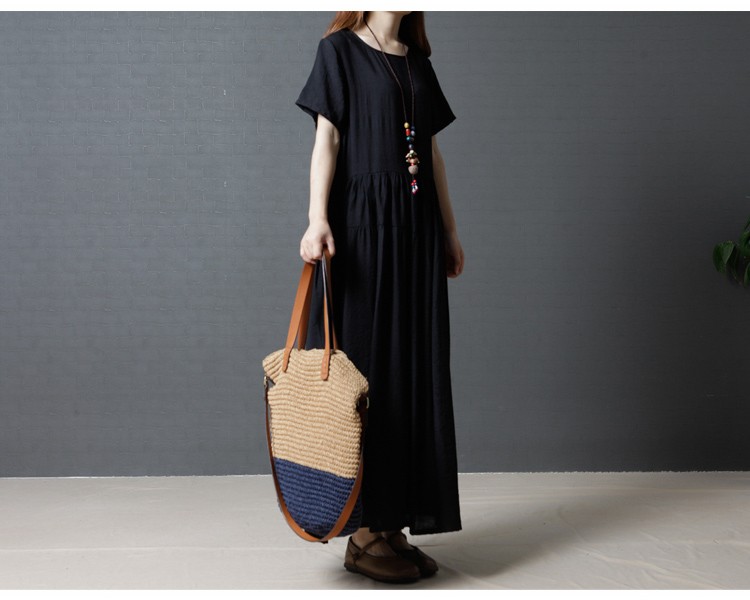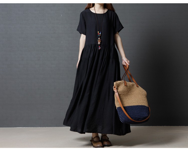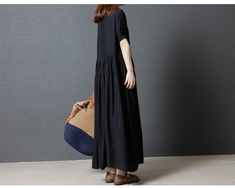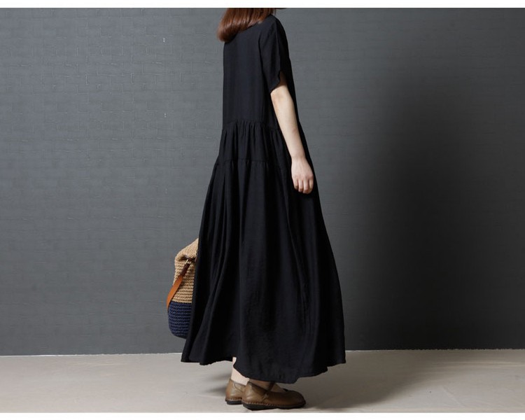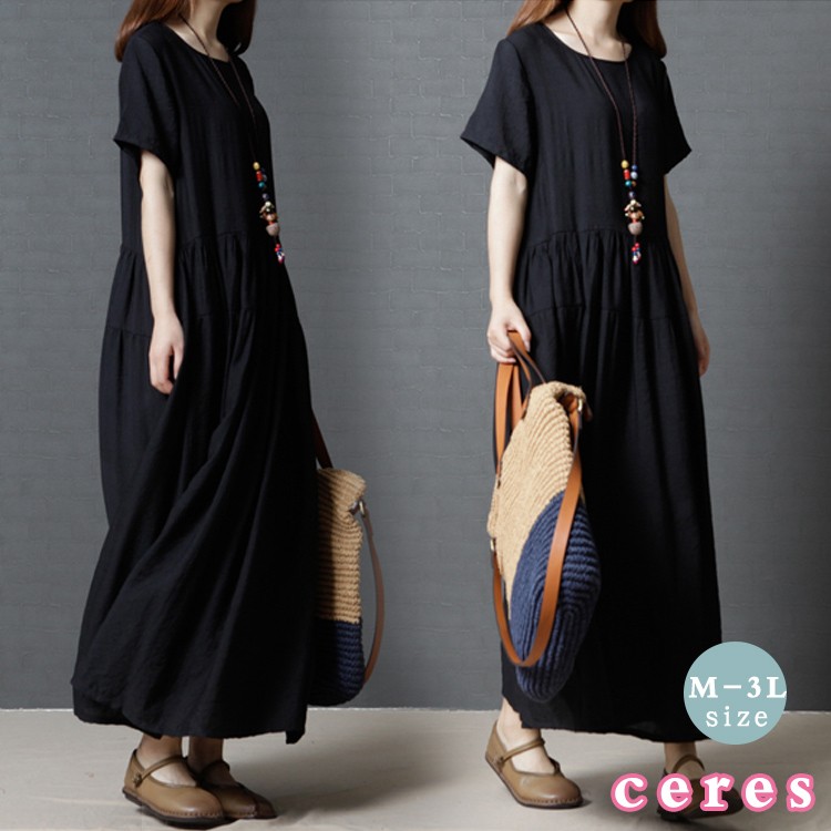 【製品仕様】■商品名半袖ワンピース ロング丈 ゆったり 黒服 フレアスカート 大きいサイズ L LL XL XXL 2L 3L■商品説明シンプルなフレアスカートの半袖ワンピース。ウェストからのたっぷりギャザーが気になる体型をカバーしてくれます。ウエスト高めで、足長効果あり。■サイズ/寸法M L 2L 3L■素材/材質コットン■色/カラー#1ブラック【検索キーワード】ワンピース 半袖 ロング丈 マキシ丈 黒服 フレアスカート 体型カバー 着やせ スタイルアップ 足長20代 30代 40代 50代 大きいサイズ