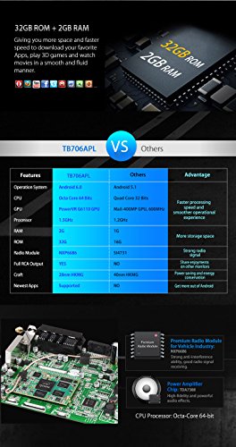 64Bit Octa Core CPU Processor @1.5GHz; 2G RAM; 32G ROM, 7 inch Touch Screen and 1024*600 Superior Visual Enhancement, Reversing Camera Included
