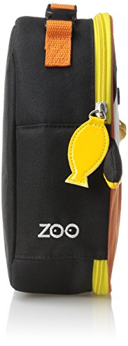 -. Feature : Roomy, insulated bag keeps food and drinks cold / Large main compartment big enough for sandwich, apple and juice box / Interior mesh pocket for utensils, lunch money and more / Top handle attaches onto another bag or zoo pack / Adorable zoo face with crafted details