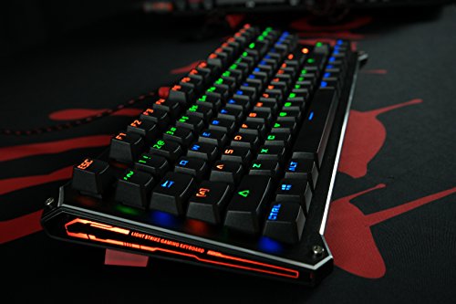Award Winning Light Strike (LK) Optical Mechanical switches with 0.2ms response time - Blue Switch with tactile feedback and an audible click - Clicky. 1.8mm Actuation point and total travel distance of 3mm. Actuation force of 55g.