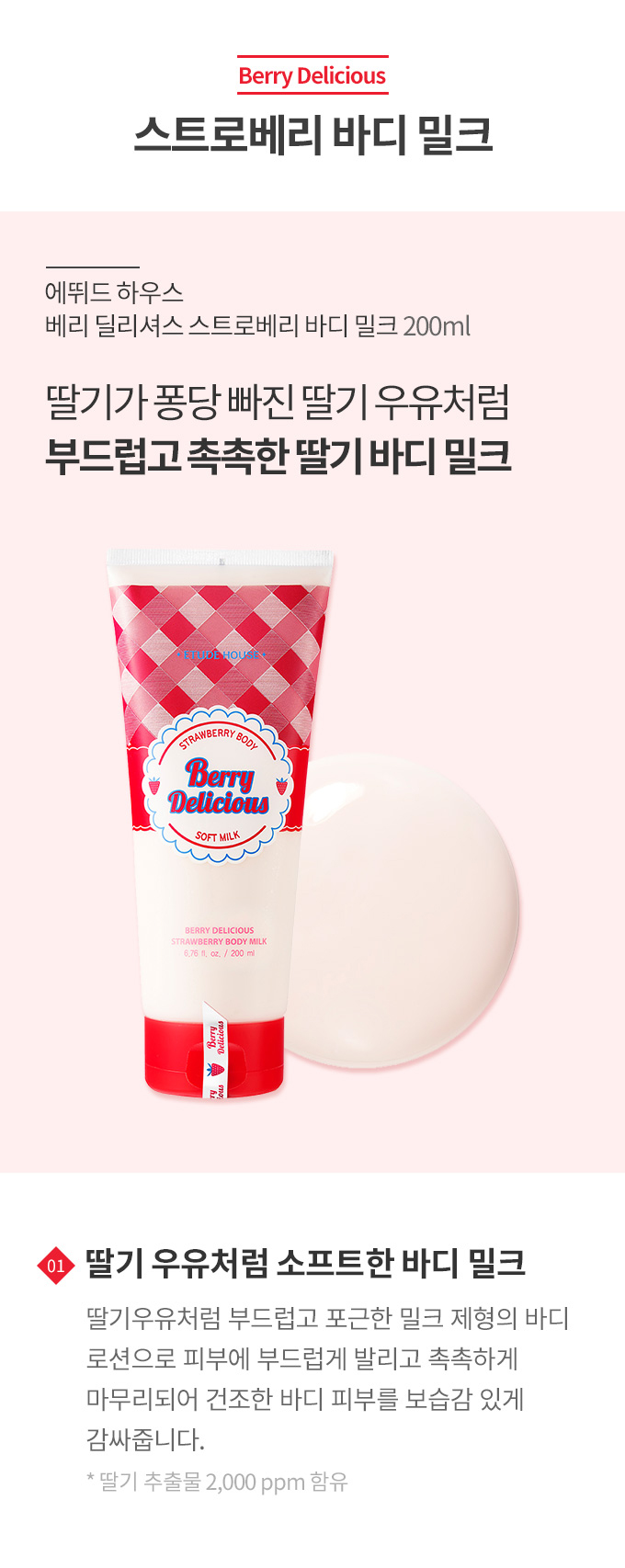 ベリーデリシャスストロベリーボディミルク 200ml - [韓国コスメ]