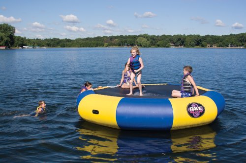 The quick set-up portable swim platform that gives great action for bounces and comfortable lounging for those that want to relax on the water