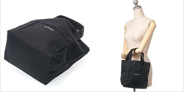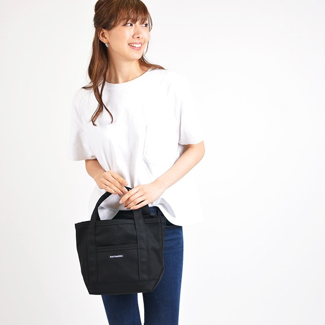 | 仕様 | W:(上部)30cm(下部)20cm×H:23cm×D:13cm 持ち手:30cm 正面ポケット×1 重量:265g | ||