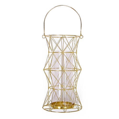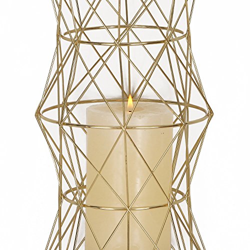 Homebeez Hurricane Pillar Candle Holder, Set of 2 Gold Wire Candle Holders