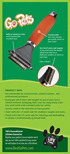 ★ GET RID OF ALL KINDS OF MATS AND TANGLES - Double sided comb has a 12 tooth side for tough mats and tangles and a 23 tooth side for faster results even with large animals and helps with thinning and deshedding.