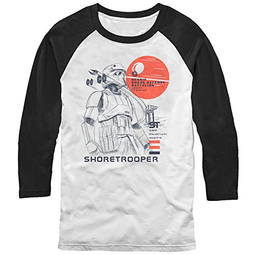 Studio : Fifth Sun Publisher : Fifth Sun Binding : Apparel Product Description Get ready for sand, sun, and Scarif with the Star Wars Rogue One Shoretrooper Black and White Baseball Tee! A shoretrooper stands with an AT-ACT and the Death Star in the background on this awesome white shoretrooper shirt with 3/4 length black sleeves. 100% Cotton. 0