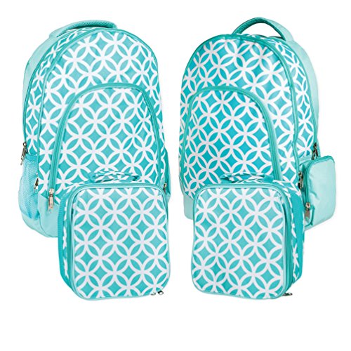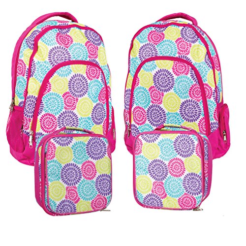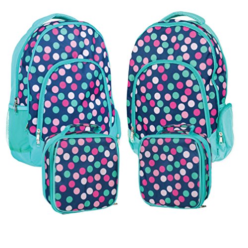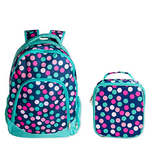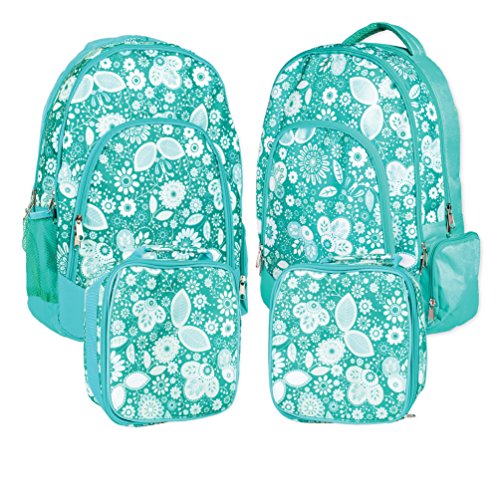 Go back to school in style with this durable and reinforced backpack and lunch bag set. Not only is this backpack loaded with organizational features like pen holders, small pockets with zippers, mesh elastic pockets and laptop storage; but, it is also really fun and designer quality. Three separate full and double zippered compartments will help your organization when going to school. Side pockets hold chopsticks and keys when another side pocket is perfect for water bottles. This backpack has generous dimensions of approximately 17" tall x 13" wide x 8" deep. Plenty of room for binders and trapper keepers. Whether your little one is going to kindergarten or you are a senior at a college campus, this backpack fits a variety of student demands. As for the lunch cooler, not only is this lunchbox loaded with storage compartments, it is also really fun and designer quality. Separate full and double zippered compartments will help you organize your foods and snacks while on-the-go. Front pocket is perfect for holding bagged snacks while the insulated interior keeps your refrigerated items cold. This soft cooler has generous dimensions of approximately 8" tall x 9" wide x 5" deep. Whether your little one is going to kindergarten or you are a senior at a college campus, this lunchbox fits a variety of traveling demands.Feature