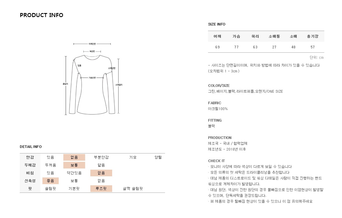 ONE SIZE로 제작되어 44-77사이즈 분들께 추천드려요