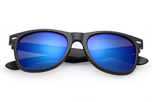 -. Title : LotFancy 54mm Wayfarer Flat Matte Reflective Lens Horn Rimmed Sunglasses, 100% UV400