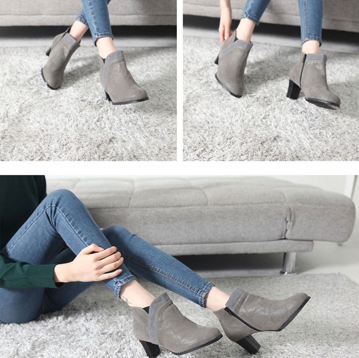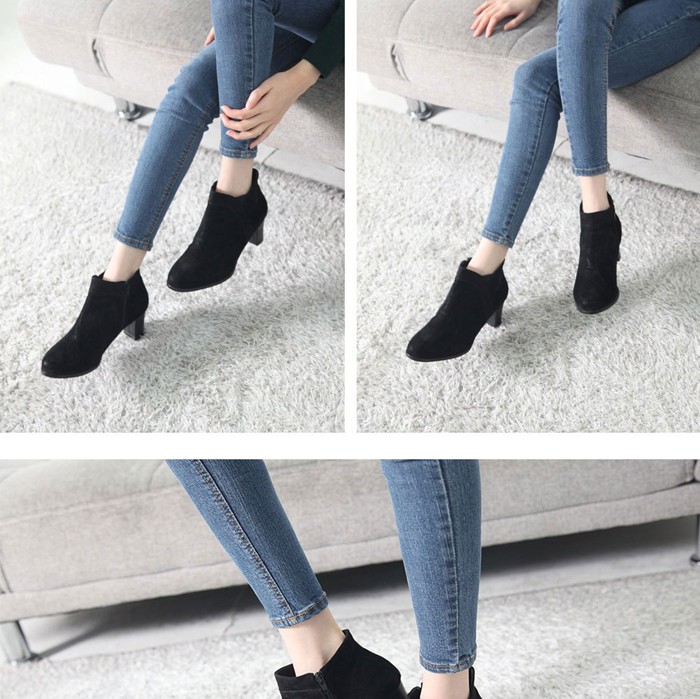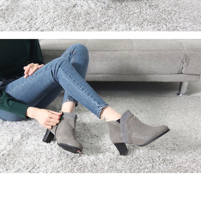 商品名:ブーティ レディース ブーティー スエード調 チャンキーヒール 太ヒール 2017 秋冬 ファッション 靴 婦人靴