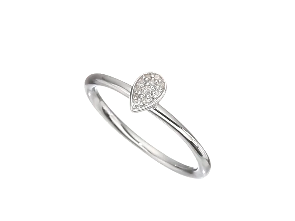 Sterling Silver Diamond Pear Shape Ring, Size 7