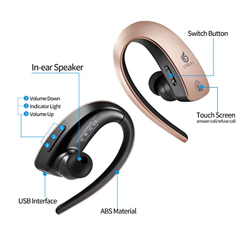 Bluetooth Handsfree, AMERTEER Touch-sensitive Control Wireless Stereo In Ear Noise Cancelling Headset with Mic for Phones-Rose