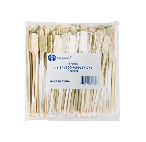 KingSeal Bamboo Paddle Picks, Skewers - 4.5 Inches, 2 Packs of 100 per Pack, for Appetizers and Cocktails