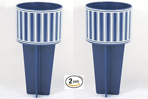 Beach Buddy Outdoor Lawn Sand Cup Holder (2, Dark Blue with Stripes)