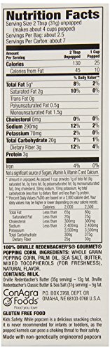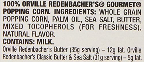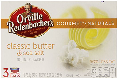 -. Feature : Contains one (1) box of 3 bags of Orville Redenbacher gourmet naturals classic butter and sea salt popcorn in 8.07 Ounce packs / Orville Redenbacher gourmet naturals classic butter and sea salt microwave popcorn has half the fat of Orville Redenbacher butter-flavored microwave popcorn, gluten-free, and naturally flavored / Orville Redenbacher gourmet naturals simply salted popcorn is made from 100% whole grains and is a good source of fiber / Orville Redenbacher gourmet popcorn uses an exclusive kernel hybrid pops up lighter and fluffier than ordinary popcorn