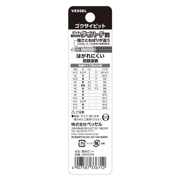 ●六角穴付ボルト、六角穴付止めネジ用のビットです。