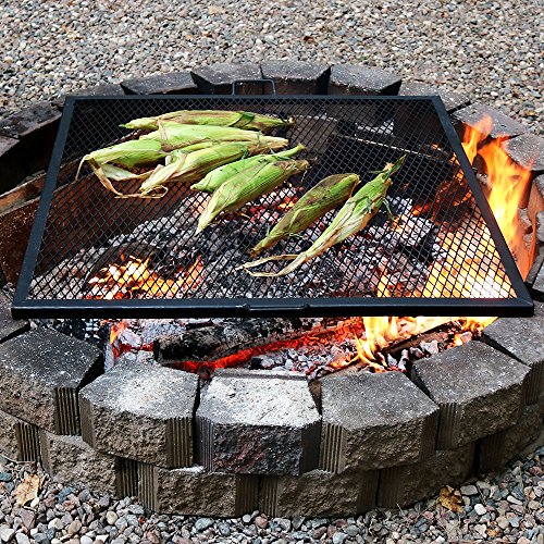 Sunnydaze X-Marks Square Fire Pit Cooking Grill, 37.5 Inch