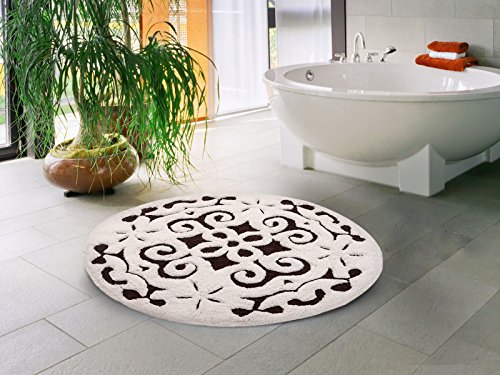 Saffron Fabs Bath Rug 100% Soft Cotton, 36 Inch Round, Damask Pattern, Latex Spray Non-Skid Backing, Chocolate/Ivory Color, Hand Tufted, Heavy 200 GSF Wt, Machine Washable, Construction