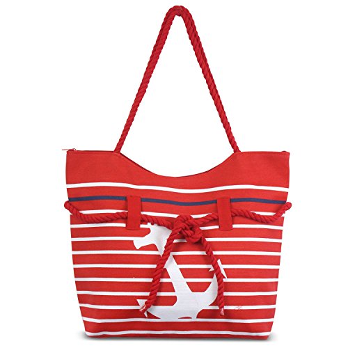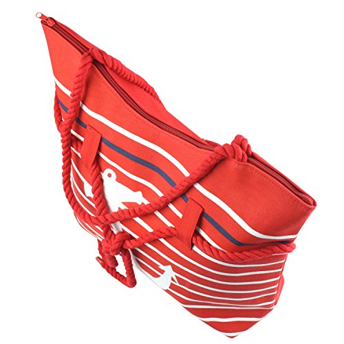Show your love of the Sea with this striped anchor tote bag. A large anchor is adorned across the front which any sea lover will enjoy. Striped dual rope handles across the front gives this bag a stylish look.