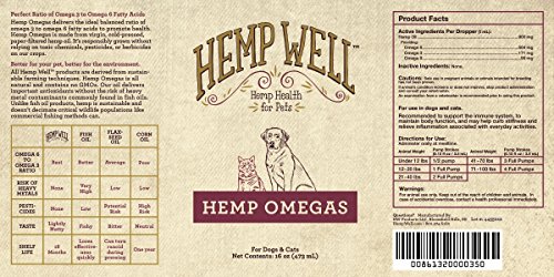 Better for your pet, better for the environment.All Hemp WellTM products are derived from sustain-able farming techniques. Hemp Omegas is all natural and contains no GMOs. Our oil delivers important antioxidants without the risk of heavy metal contaminants commonly found in fish oils.