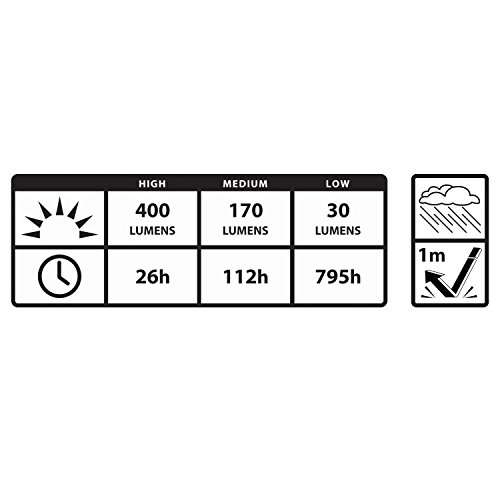 The Nite Ize Radiant 400 LED Lantern has three, white LED light settings: high (400 lumens), medium (170 lumens) and low (30 lumens). Switch to adjust to differing light needs. High-tech optical diffuser provides a uniform beam pattern and beacon-like brightness. LED lantern battery-power offers nearly 800 hours of light in low mode. Runs on three D-Cell batteries that are easy to replace when needed.