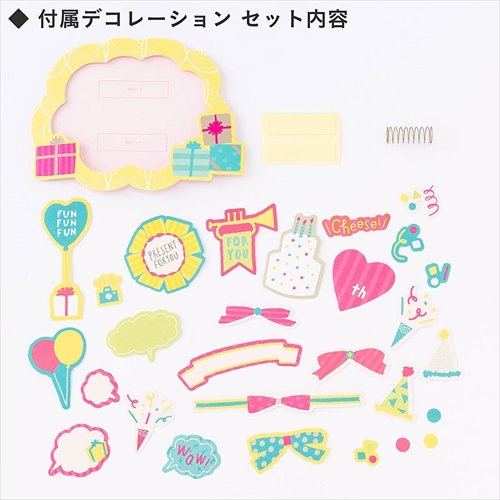 세트내용:앨범 선물박스×1(뚜껑×1,대지(사진붙이는 두꺼운 종이) 부착 본체×1)고, 데코레이션 flake 씰×28매,업 포토 프레임×1(포토 프레임×1,스프링×1,접착용 양면 테이프×2)